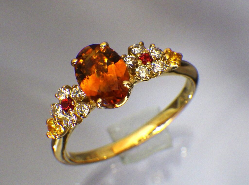 脇石にオレンジサファイア&イエローサファイアをセット