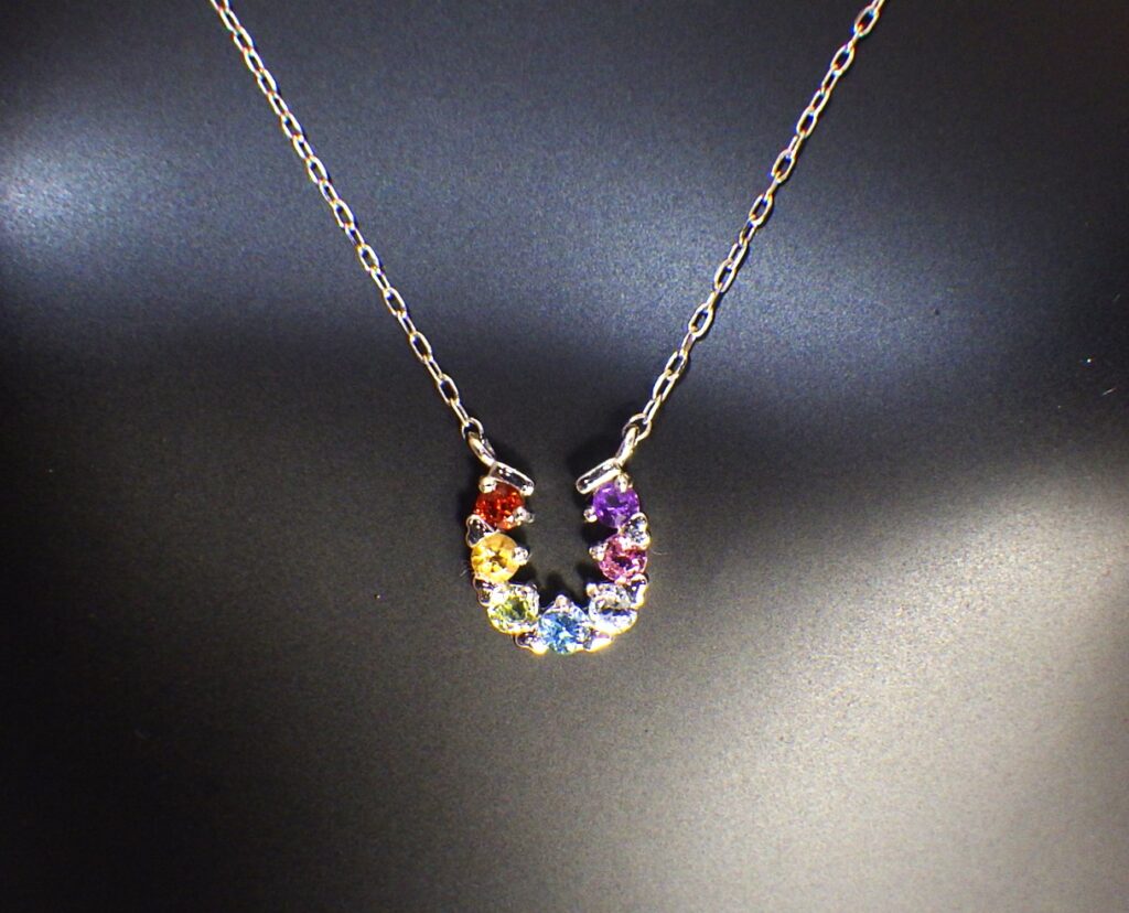 アメシスト シトリン ブルートパーズなどをホースシュー デザインにセット