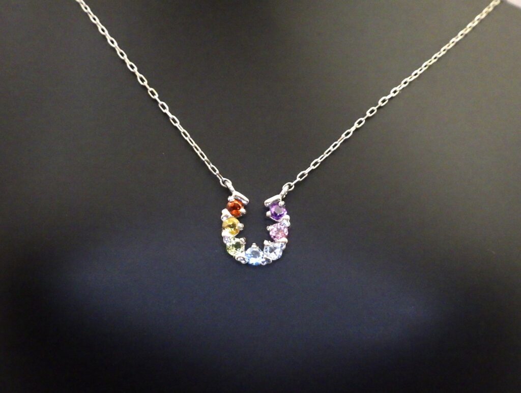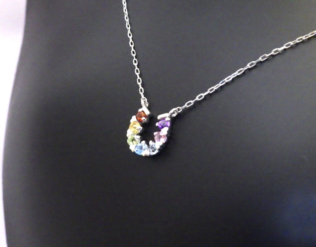 アメシスト シトリン ブルートパーズなどをホースシュー デザインにセット